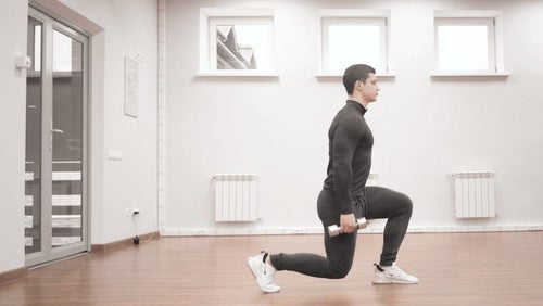 - Állj meg egyenesen, a lábaidat zárt össze és lépj előre egy nagyot a jobb lábaddal, a csípődet lefelé közelítve a talajhoz.