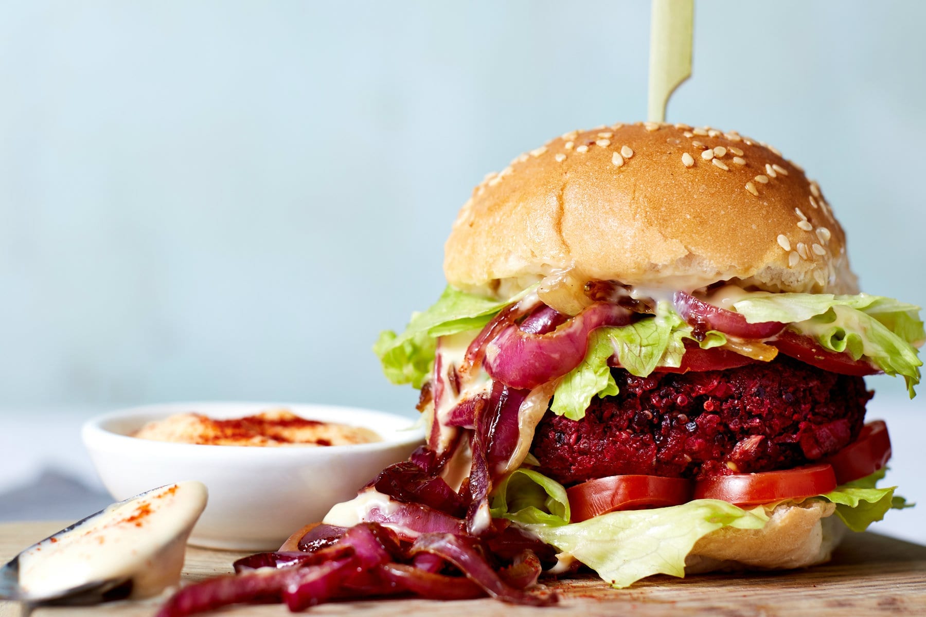Gyorsan elkészíthető, izgalmas vegán receptet keresel? Ízletes vegán cékla hamburgerünk mindössze 15 perc alatt elkészíthető. Saját készítésű, növényi alapú hamburger öntetünkkel és vegán burgerünkkel könnyen lenyűgözheted barátaid és családtagjaid.
