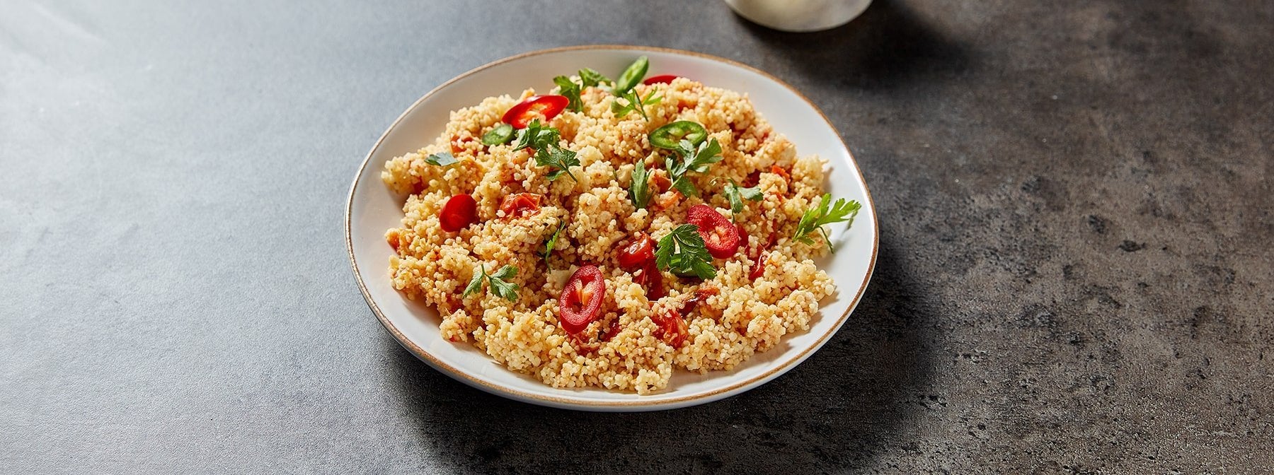 - Mindeközben önts egy nagy tál kuszkuszra forró zöldség alaplevet! Keverd össze alaposan, és lefedve főzd kb. 10 percig, vagy amíg a kuszkusz felszívja az alaplevet, és így szaftosan puha lesz.