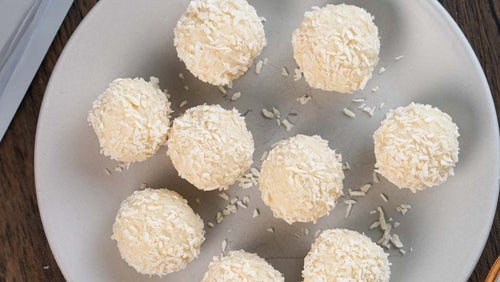 Fehér csokoládés-fehérjés kókuszgolyó recept