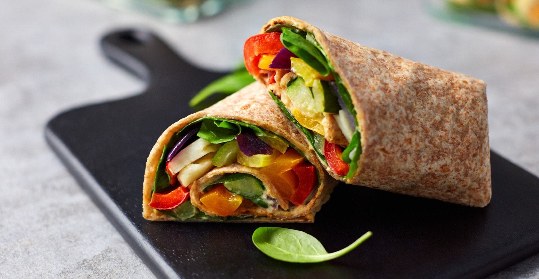 Melegítsd fel a tortilla tekercseket mikrohullámú sütőben (kb. 20 másodperc alatt) vagy egy serpenyőben kevés zsiradékon! - Kend meg a tortilla tekercseket 1-2 evőkanál hummusz krémmel, és töltsd meg őket zöldséggel és halloumi sajttal! A tálalásnál helyezz bébispenótot vagy saláta leveleket a wrap tetejére!