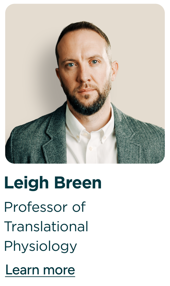 - Professor Leigh Breen – Leigh az izomfiziológiára és az öregedésre specializálódott - segít nekünk abban, hogy a hosszú távú erőt és mobilitást támogató kiegészítőkkel kapcsolatban az élen járjunk.