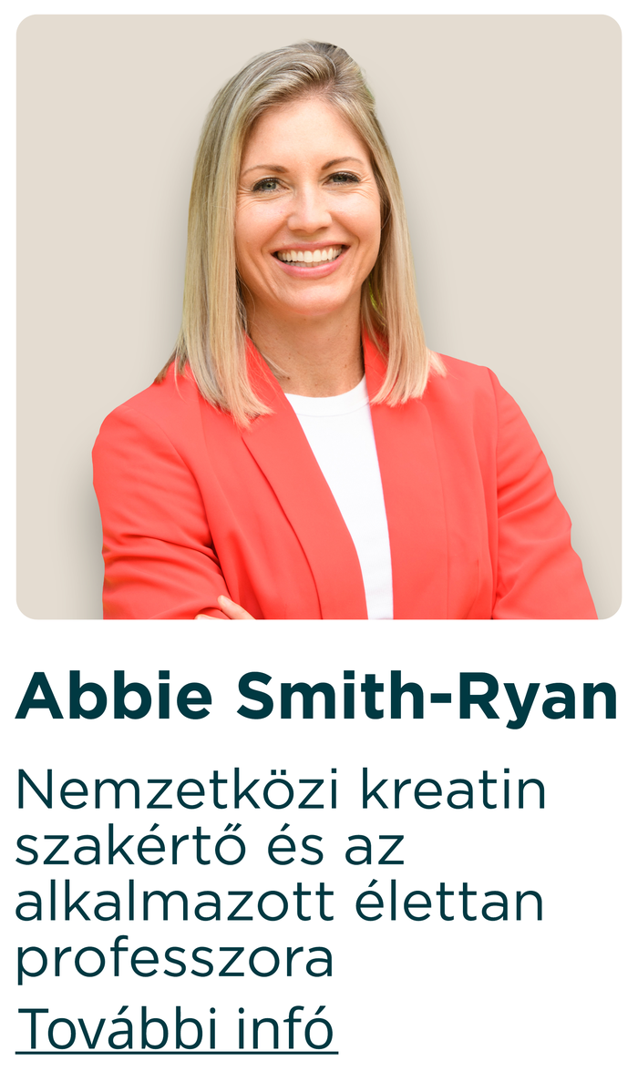 - Abbie Smith-Ryan, PhD – Abbie nemzetközi kreatinszakértő, az UNC Chapel Hill-i egyetem Alkalmazott Fiziológiai Laboratóriumának igazgatója.